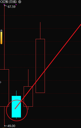 C红板,周四这个底部非常好,关键支撑,我们尾盘分析提示,当时在51-52这个位置,是很好的抄底,你看连续两日大涨百分之20多,目前还在加速中