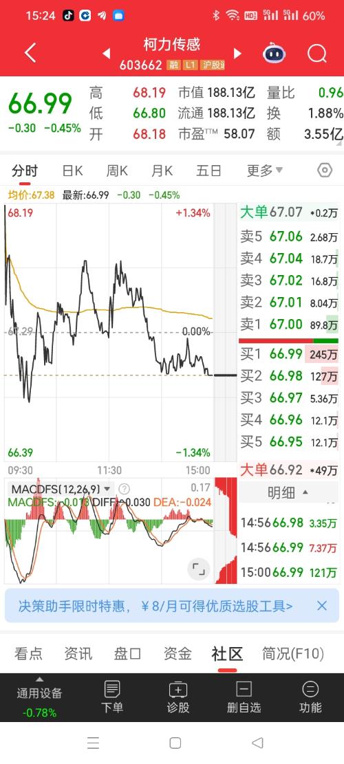 $柯力传感(SH603662)$66.99暗示下周一涨停