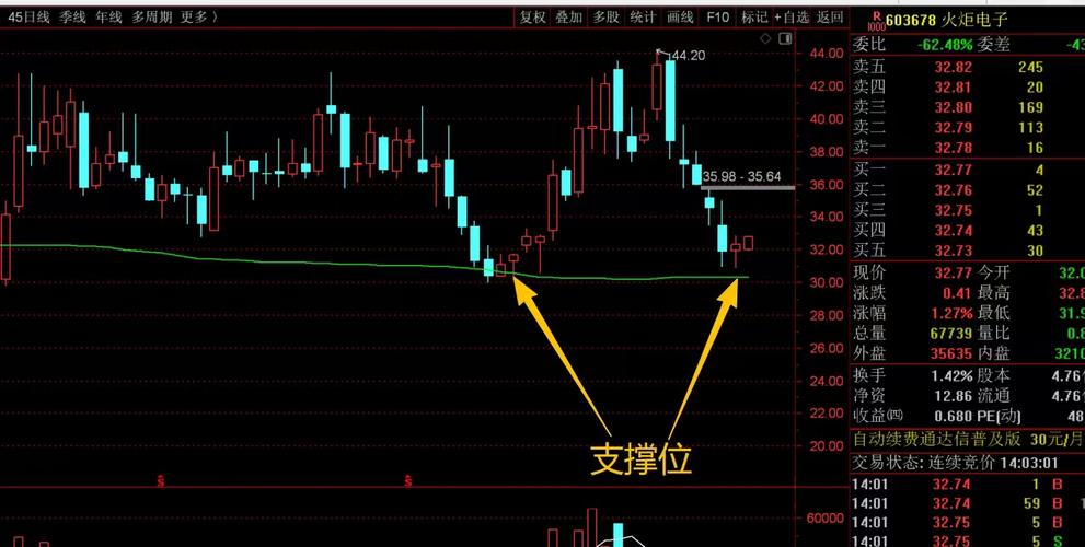 $火炬电子(SH603678)$近期趋势整体是一个大的箱体横盘震荡的走法,暂时没有明显的方向出来,前期回落下来都能够在大均线位置得到支撑,当下这里再次回落到大均线位置,所以接下来重点就看大均线30.35位置的支撑情况,能稳住就还不错,起码能看个反抽动作或者是横盘整理,但如果有效跌破,就要注意破位风险了,需要严格控制仓位,防着潜在的破位后连续下杀的调整动作。