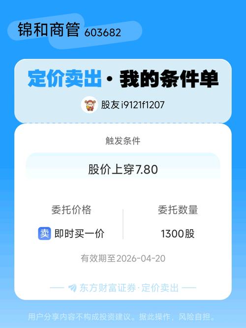 #条件单交流##定价卖出晒单#一位股神设置了一个定价卖出条件单,接下来就是见证奇迹的时刻~$锦和商管(SH603682)$