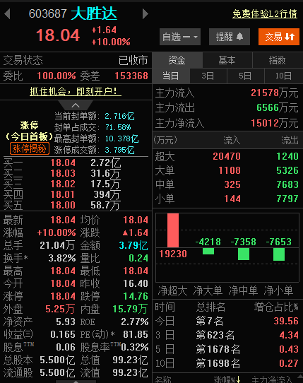 $大胜达(SH603687)$没有一字板不及预期,应该5个一字板再开板才强势