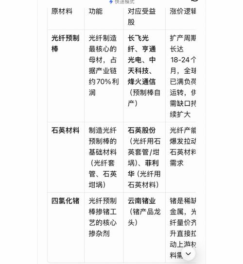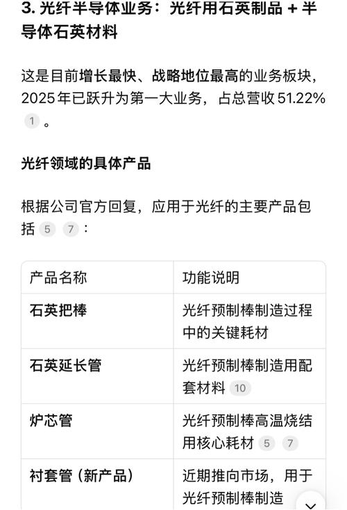 根据新浪财经、东方财富网等权威财经媒体披露,A股市场中涉及石英光纤产业链的上市公司主要分为光纤制造龙头与石英材料核心供应商两类。 光纤制造龙头企业 长飞光纤(601869):全球第一大光纤厂商,石英股份第一大客户,直接生产光纤预制棒及光纤。 亨通光电(600487):全球前三,出口光棒100%采用石英股份材料,具备完整光纤产业链。 中天科技(600522):特种光纤龙头,55%以上石英材料来自石英...