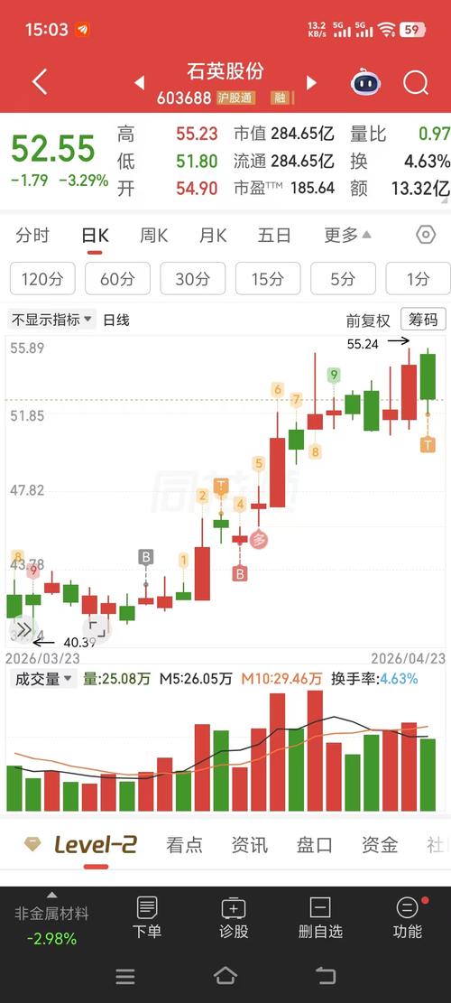 $石英股份(SH603688)$成本41.56,昨天55的卖单撤了,没有把利润做到最大化,这是这一次最大的失误;既然失误了也就不折腾了,这次陪主力跟到底,看看我41.56的成本能不能扛得住主力的轰炸!