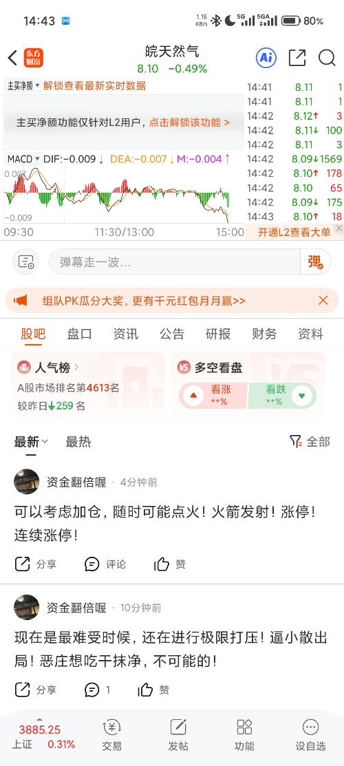 $皖天然气(SH603689)$要的就是这个效果,看那两条叫发射,涨停的还来叫不