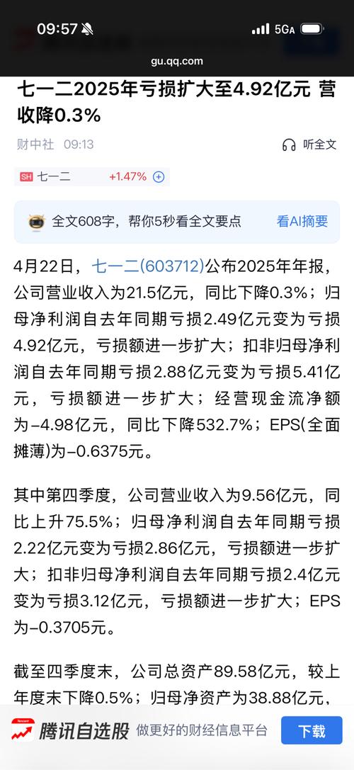 资讯 七一二(603712.SH):2025年年报净利润为-4.92亿元,同比亏损扩大