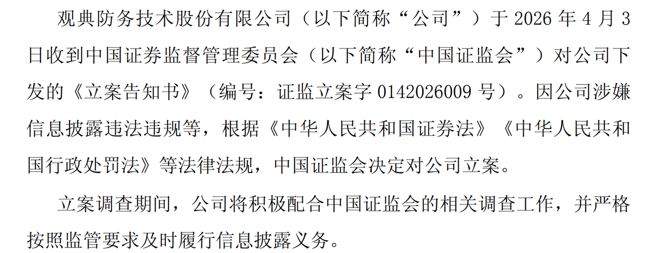 资讯 一天之内,A股4起立案公告