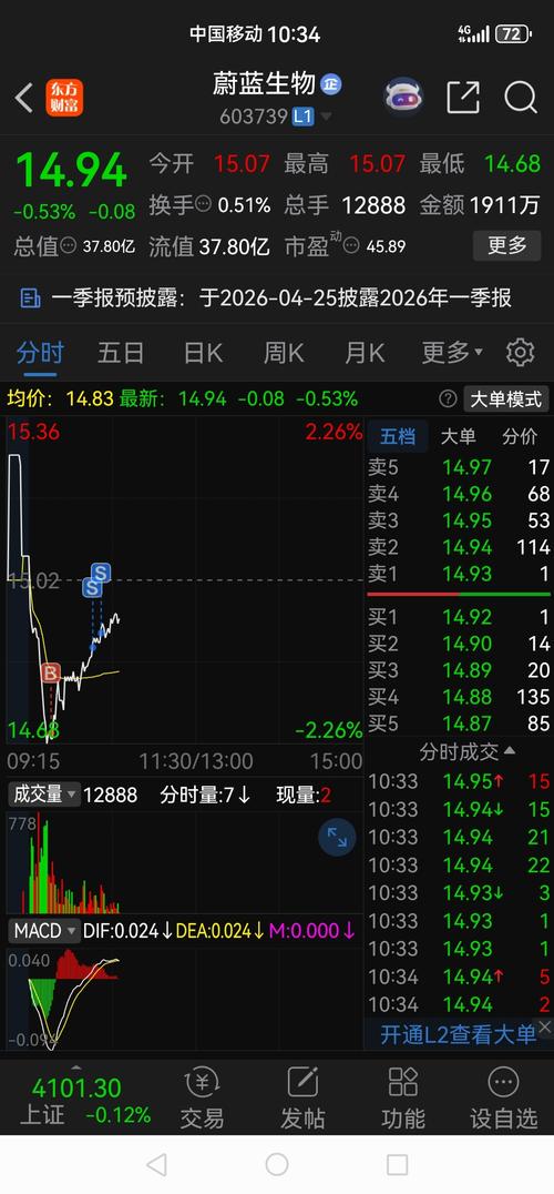 $蔚蓝生物(SH603739)$终于出来了,可惜我尾盘扔了几百股