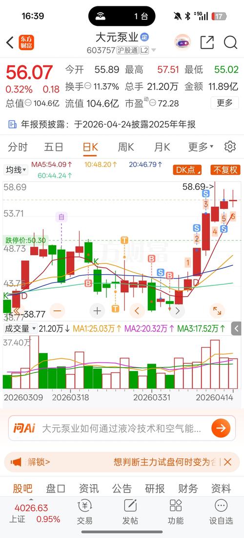 $大元泵业(SH603757)$ 下午水下低吸了这个,风险还是太大了,有点后悔了,只拿到1个多点的先手。 连续3天冲高回落,突破不了,真怕继续回落洗盘。 液冷这边,圣阳已经4板了,新鹏也4天3板反包,首板只有一个海鸥,如果明天圣阳可以分歧转一致,开一字板就皆大欢喜,能继续上板也行,如果不及预期,感觉大元也不好过。 应该回踩50块再买入,或者突破62回踩57的时候买入,更安全一点。