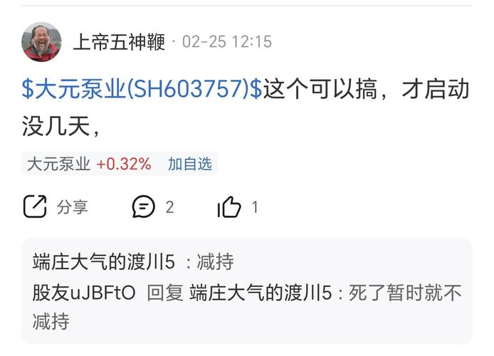 $大元泵业(SH603757)$看这个票评论区这么冷清都没啥人气,散户少的票主力不拉高怎么出货