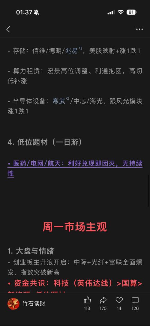 指数行情与布局方向分 近期指数强弱反转,沪指表现低迷,创业板指、深成指持续走高。从盘面看,CPO、5G、芯片等科技题材成资金主线,如光模块、半导体相关标的持续获资金净流入,带动创业板走强。市场已从电力、油气等传统板块,彻底切换至科技方向,这是后续数月布局的核心关键。 周末消息面对油气板块有短期利好,参考过往行情,这类利好影响多不超过1-2个交易日。若科技题材随消息面出现短期回落,比如算力、芯片相关...