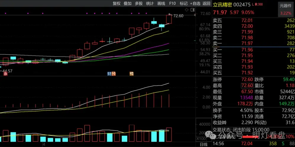 盘面 4天3分歧,大分岐后出现了退潮迹象。光纤长飞光纤破10日、天孚通信破30日、燃气轮机常宝股份跌停、英维克继续破位,辨识高标们呈现温和退潮的迹象。按照以往情绪不好的时候,周五温和退潮,周一容易演化为正式退潮,但目前这波行情情绪处在高位,加上牛市不言空,所以周一不一定会延续退潮,所以战友们也不必自己吓自己,过于恐慌。 板块 大消费中泰慕士走出持续性,说明部分主力紫金主动避险,大消费的预期依旧在。...