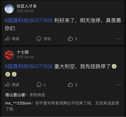 $国晟科技(SH603778)$炒股一定要有自己的思维,要自己想,不要太情绪化。看看吧里这些唱空的,说4-5板的,让你赶紧举报维权的,说国晟是诈骗的,哪个有票的人会这样说,不都是没票的人在嘲讽,在踏空后悔吗?他们这样做的目的是什么,我们有票的又为什么要被他们没票人的话影响呢?独立思考,独立思考,独立思考