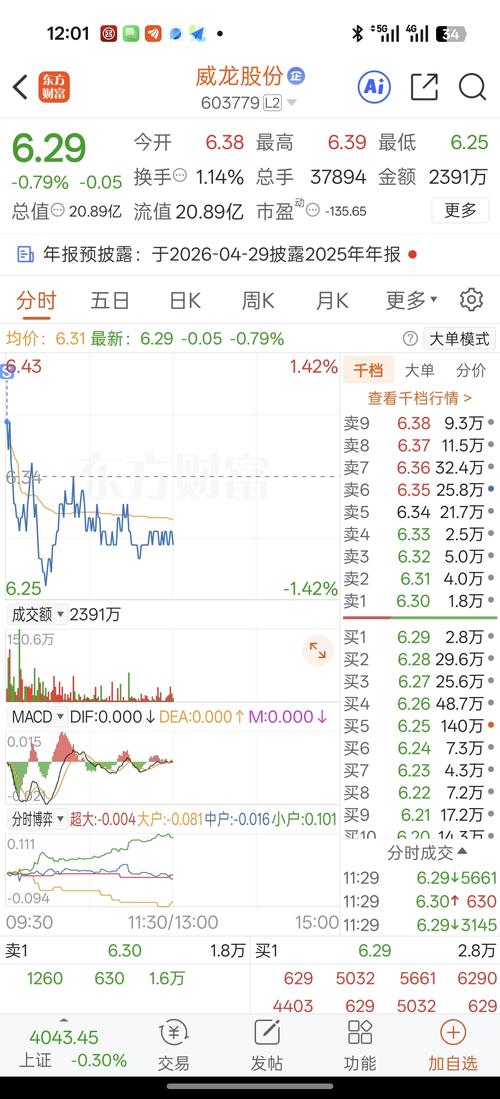 $威龙股份(SH603779)$坐等6.39,3700手被吃掉