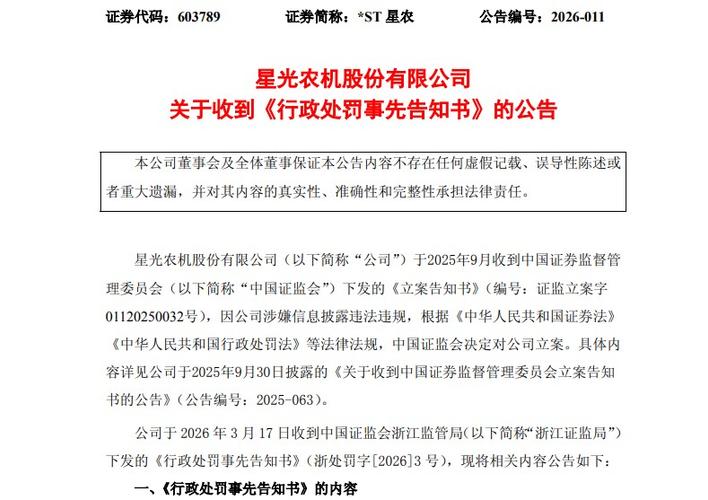 $*ST星农(SH603789)$星光农机(603789)因子公司虚构业务、虚增营收利润,财报存在虚假记载,被证监会立案并拟行政处罚,严重损害投资者合法权益。 符合以下任一条件即可索赔:1、2024年4月30日至2025年9月26日买入,且2025年9月27日(含)后卖出或持有;2、2025年9月29日之前买入,且2025年9月30日(含)后卖出或持有。 谢保平律师专业代理维权,免费资格核验,风险...