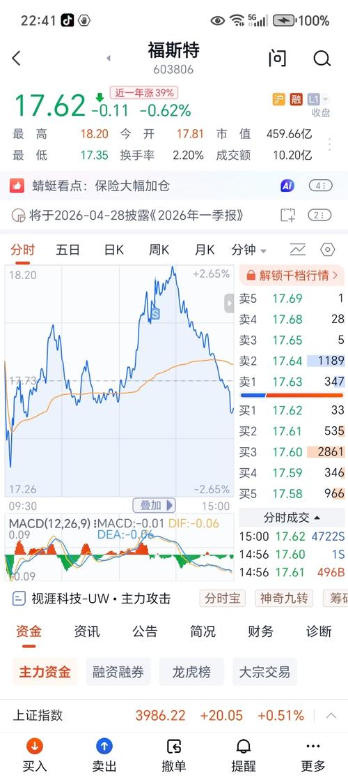 $福斯特(SH603806)$有没有这个股的老人告诉我,尾盘17.71进的,周一能活着出来吗?