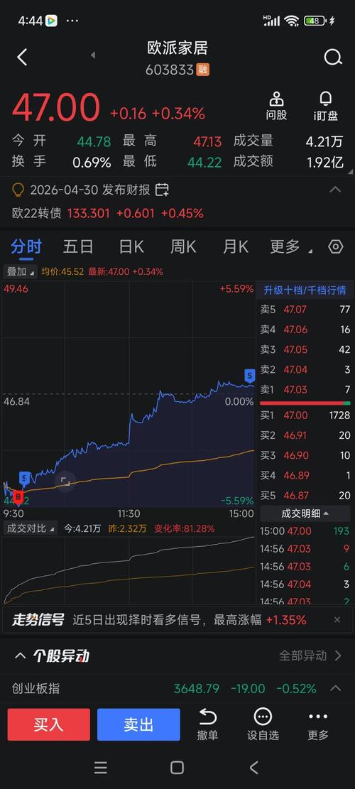 $欧派家居(SH603833)$昨天红一下结束六连跌,今天继续