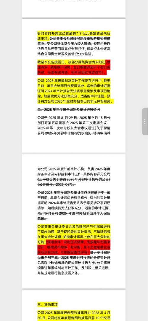 公告 *ST正平:正平股份关于2025年年度报告编制及审计进展的公告
