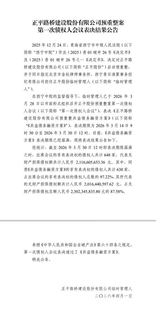 $*ST正平(SH603843)$ 四月三号公告内容分析旺旺课代表04-0210:50·山西关注*ST正平----$*ST正平(SH603843)$ 复牌安排:鉴于核查工作已完成,经向上海证券交易所申请,公司股票将于2026年4月3日(星期五)开市起复牌。 核查结果:公司不存在应披露而未披露的重大信息,股价上涨主要受市场重整预期影响,与公司基本面存在严重偏离。 风险重申: 退市风险:非标意见消除、...