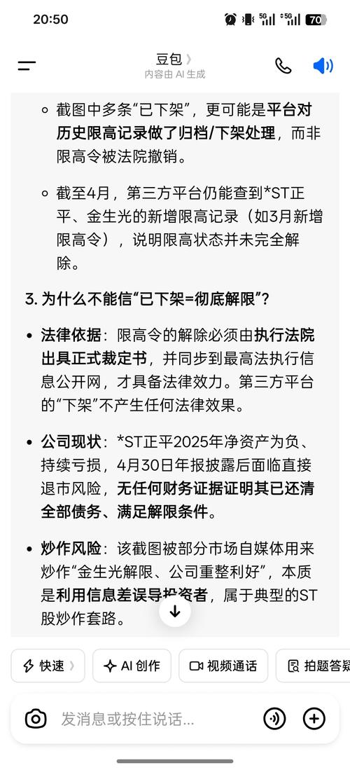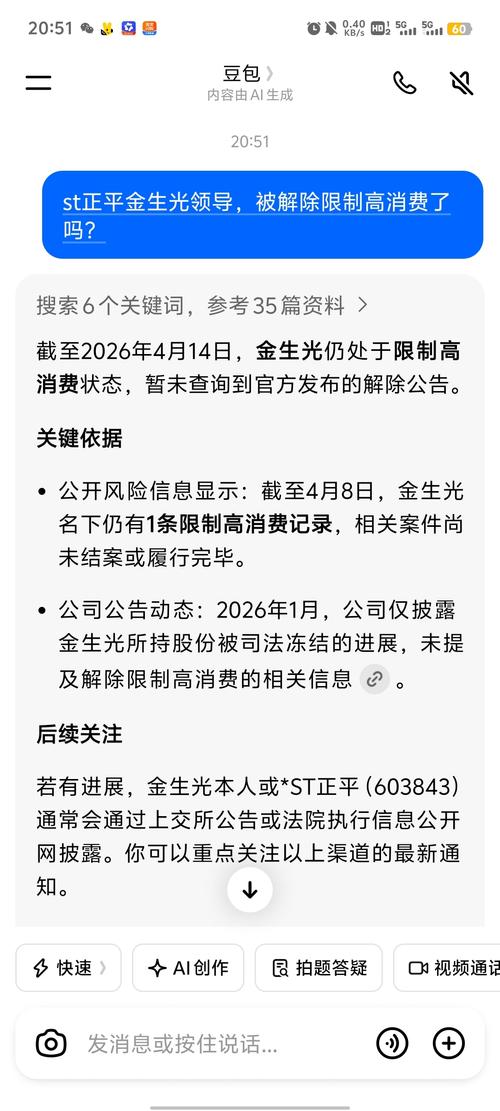 $*ST正平(SH603843)$我问了一下豆包,豆包说没有解除 限制高消费