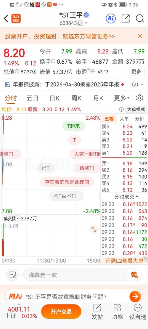 $*ST正平(SH603843)$今天咋走,希望主力善待铁头们