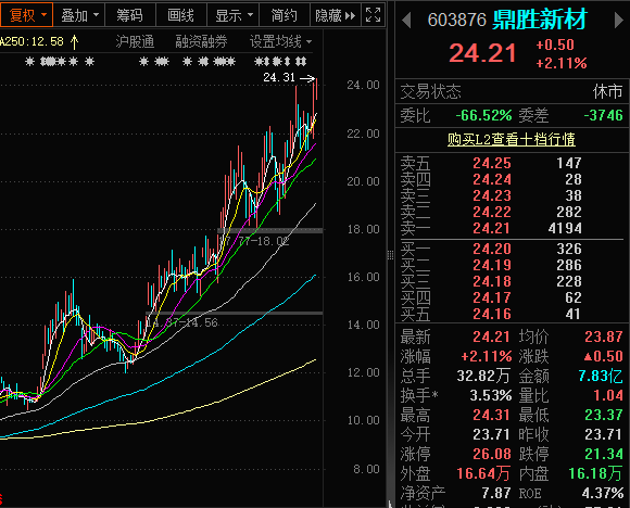 $鼎胜新材(SH603876)$这货为什么这么强