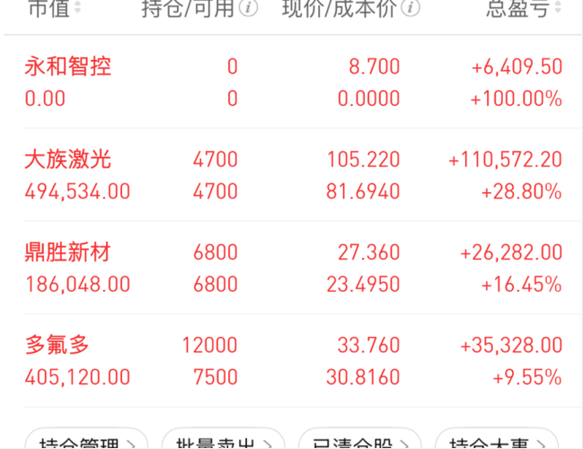 大族激光,这票是工业设备龙头,基本面扎实,业务覆盖高端制造、消费电子等多个领域,行业回暖加上相关赛道的热度加持,订单和业绩都在改善,属于有实打实支撑的票。技术面上,它现在走的是上升趋势,均线多头排列,走势比大盘强不少,上方没有明显的强压力位,不过短期涨幅不小,也有回调的风险。今天操作上,别盲目追高,持仓的可以逢高适当减一点仓,降低仓位锁定安全垫,留部分底仓继续看趋势就行。 鼎胜新材,这票是新能源电...