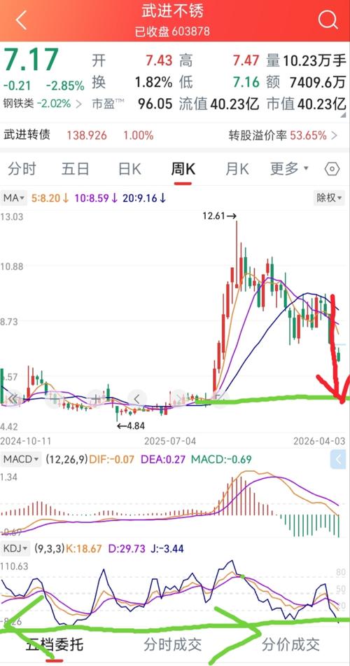 $武进不锈(SH603878)$ #复盘记录#周线,KDJ值J小于-8.26上五回五走势=5.5,周头肩顶一比一等长等于5.5量化交易系统,反抽后建仓位5.5仅供参考!不喜勿喷!