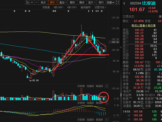 比亚迪,在能源危机推动下,新能源发展的预期肯定不会差,作为新能源行业龙头,市场关注度肯定不会差。同样作为新能源的龙头宁德时代已经在创历史新高的路上,那么比亚迪后续走出创新高的行情也就非常值得期待。 上周股价在来到120日均线后,立即企稳,且周三和周五的两根中阳线组成多方炮,后续在5日均线拐头跟上的情况下,只要量能保持稳定,走出新一轮上行行情概率会偏大。 3月的上行,可视为是上行5浪的吸筹,近期缩量...