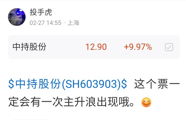 $中持股份(SH603903)$今天大单不断抢筹明天直接一字板恭喜今天追进去的发大财了坚定持股坐轿数钱了