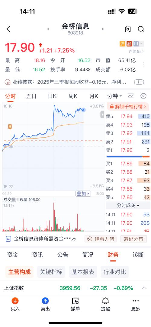 $金桥信息(SH603918)$是谁还没回本啊,哦,是我