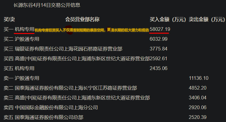 资讯 长源东谷(603950)龙虎榜数据(04-14)