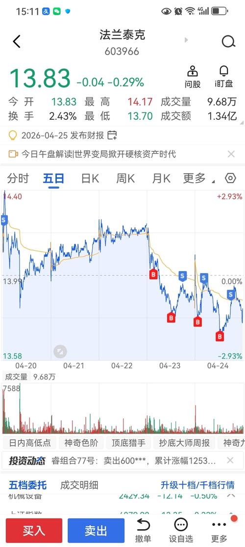 $法兰泰克(SH603966)$个人操作是看20线,守住就格局,破了就清仓,期间有机会就做下T,今天成本T到13.4左右了