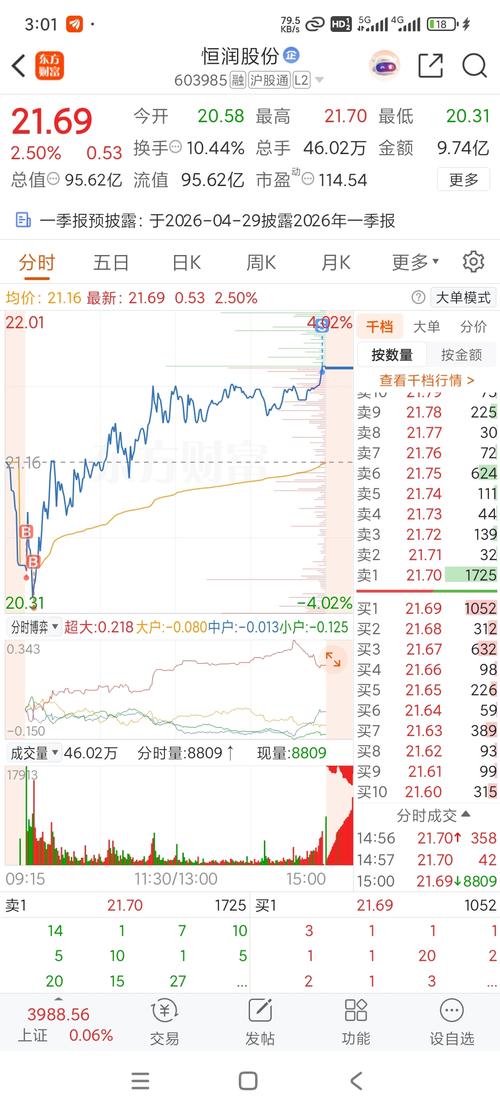 $恒润股份(SH603985)$放量滞涨,我先走一半。