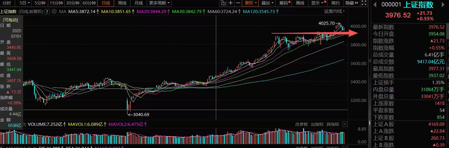今天市场表现很强,上午开盘科技股大跌,但下午明显收回,三大指数集体翻红,个股中位数涨幅0.66%。不过成交额暂时没有放量,维持在2.1万亿。从技术层面来讲大盘今天回补3945的缺口后,迎来技术性的反弹,但这个地方直接上去老刘觉得不太现实,短期内还要在4000点到3800点这个区间内来回震荡,年内希望能牢牢站稳4000点,后面有机会继续向上冲击新的高点,具体到多少点,老刘不预测,但相对乐观的情况下明...