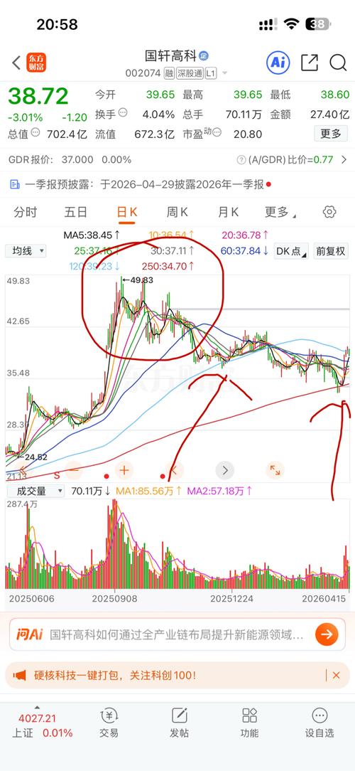$兆易创新(SH603986)$不要被贴吧唱多洗脑,要有自己判断,这货回调时间远远不够,跌下来时间太短了,冲不上去有回踩年线的预期。大家不要重仓赌博,容易被套。看一下国轩高科,半年线也是支撑了很久,然后最后跌到年线才企稳回升,走势也非常像。