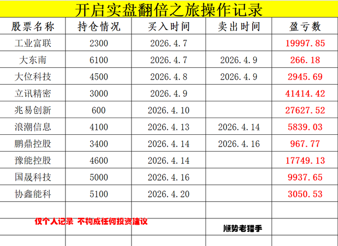 理性交流,市场看法、操作心得和风控思路,不荐股、不抬杠、不攻击,互相探讨! 祝各位股友股市长虹! $工业富联(SH601138)$ $立讯精密(SZ002475)$ $兆易创新(SH603986)$ 特别声明:这只是我个人的操作记录,仅供参考,不作任何投资建议!更不是劝大家跟买!大家切勿盲目跟风!股市有风险,投资需谨慎!风险自负!!