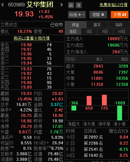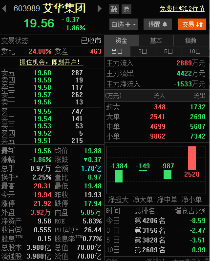 资讯 艾华集团:融资净偿还748.54万元,融资余额1.36亿元