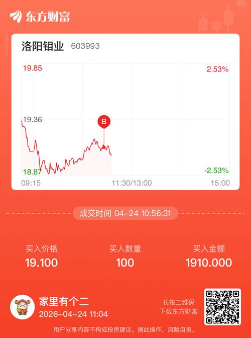$洛阳钼业(SH603993)$ 今日成交股票: 操作原因:脑子抽风了!