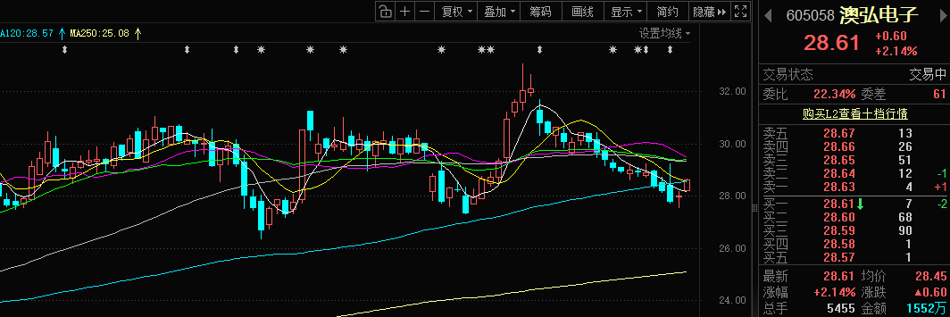 $澳弘电子(SH605058)$到30了成本上去了无法再加了