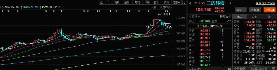 可转债前沿 卓镁转债:今日开盘继续受到资金青睐,冲击188的高位,单签获利880大洋,市场已经充分释放,持有者记得止盈离场。 虽然$三房巷(SH600370)$总股本有38.97亿,但控股股东就持有81%的筹码,实际流通盘仅有7.4亿股,属于大市值小流通标的,走势和微盘股十分相似,股价连续多日回调,又回到起涨点。 三房转债将在11月26日收盘后触发修正条款,即使董事会修正转股价的概率不大,但三房转...