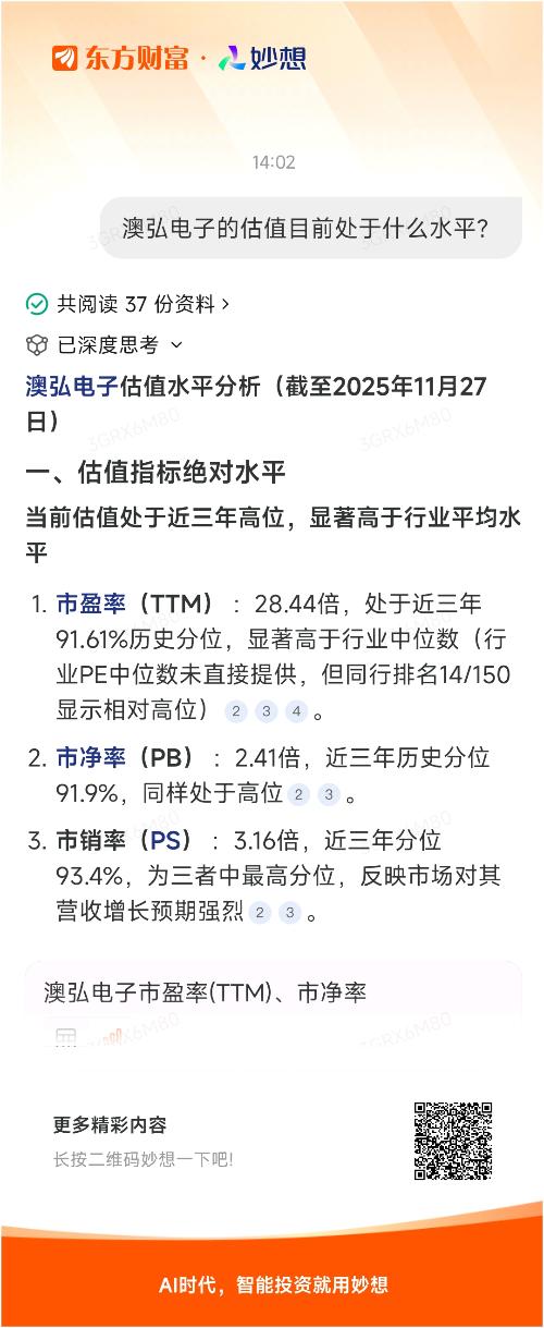 #@妙想,你怎么看?#妙想一下:澳弘电子的估值目前处于什么水平? #炒股日记##强势机会##实盘记录##投资干货#