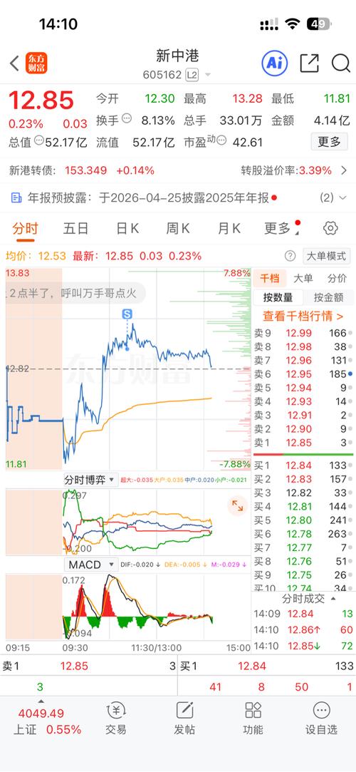 $新中港(SH605162)$今天开盘,我买了半仓!刚才板打开是洗盘明天早盘开盘清仓或者再定正常是开盘清仓