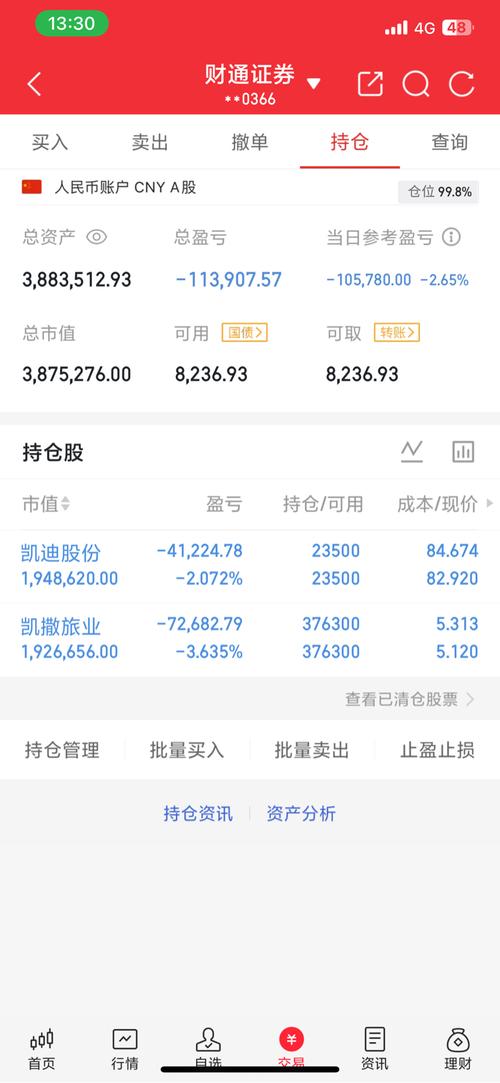 $凯撒旅业(SZ000796)$$凯迪股份(SH605288)$ 4.23今天的账户又是绿油油的一天 满仓两只票,凯迪+凯撒,双双被锤。 单日回撤2.65%,总资产浮亏11W+,有点肉疼但还扛得住。 交易这条路,哪有只赚不亏的,先稳住心态,再看后续怎么修复吧。
