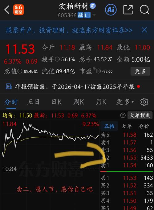 $宏柏新材(SH605366)$卖二,臭。反向指标。愚人节,愚它爷爷的可能性很大。依我看,它的上涨才刚刚开始。