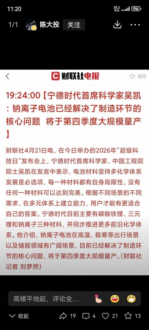 资讯 钠离子电池重大突破!电池板块狂飙,蔚蓝锂芯直线拉涨停