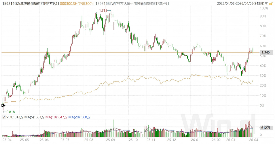 最近的市场,跌得大家都挺难受的。不过随着外部环境的缓和,股市也开始了全面大反弹。坚守的朋友,也终于“等到了”。 数据来源:wind,2026-4-8收盘。 投资,往往是这样,一如我们一直坚守的创新药,从去年9月份以来一直比较“艰难”的创新药,最近也有很不错的表现。 从港股通创新药ETF易方达(159316)近期的走势来看,明显强于沪深300等大盘指数,我们的坚守也终迎来了回报。 近1年走势: 数据...