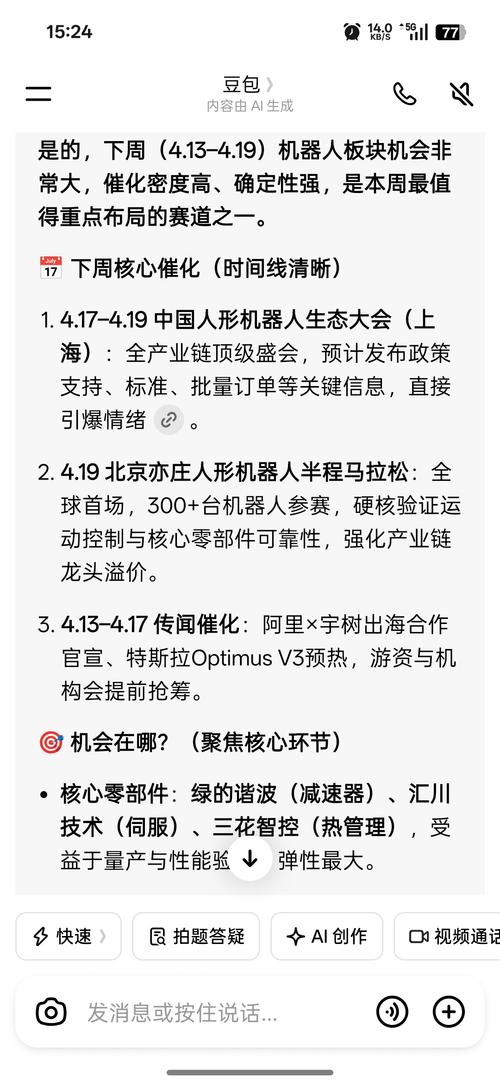 $汇川技术(SZ300124)$$绿的谐波(SH688017)$$三花智控(SZ002050)$ 为什么还有人在看好机器人?好好想想,到底是不是别人想让你接盘呢!表演5分钟,散热半小时,还指望作用在生产中?比人工贵多了,感觉是资本炒作出来的虚假狂欢,理智的人应该冷静下来思考一下。不买一定不会亏钱,买了不一定能赚钱,做确定性的事,炒股不是买代码开大小!个人观点,希望各位股票长红。 鲜明的观点可能会错...
