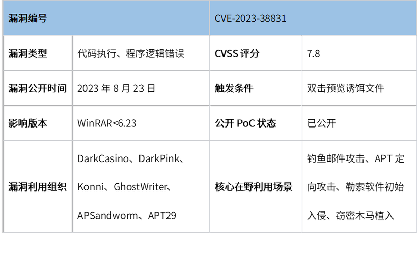 你的WinRAR还在“”? 引言 压缩工具凭借其便捷性和广泛部署性已成为高价值攻击目标,作为全球应用最广泛的压缩/解压软件之一,WinRAR在企业办公场景与个人用户群体中均具备极高的渗透率,但其近年来高危漏洞频发。尽管官方已及时修复,大量未更新终端仍处于暴露状态。本文将系统盘点近三年WinRAR高危漏洞,旨在明确漏洞特征、梳理风险隐患,为企业及个人用户防范相关安全威胁、制定科学的防护策略提供参...