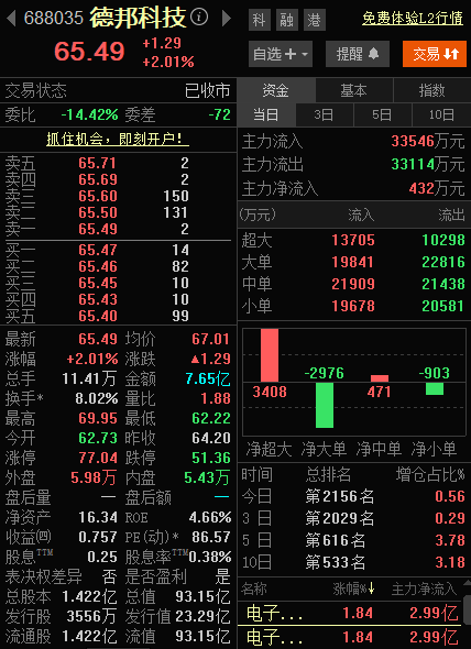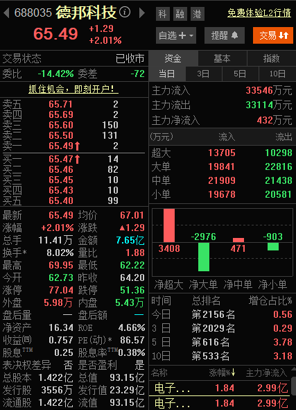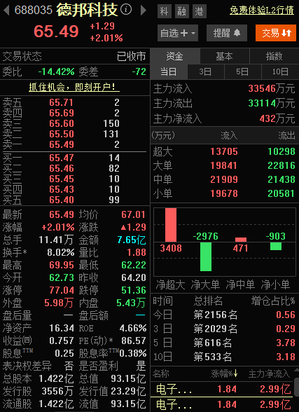 资讯 德邦科技:融资净偿还977.67万元,融资余额3.67亿元