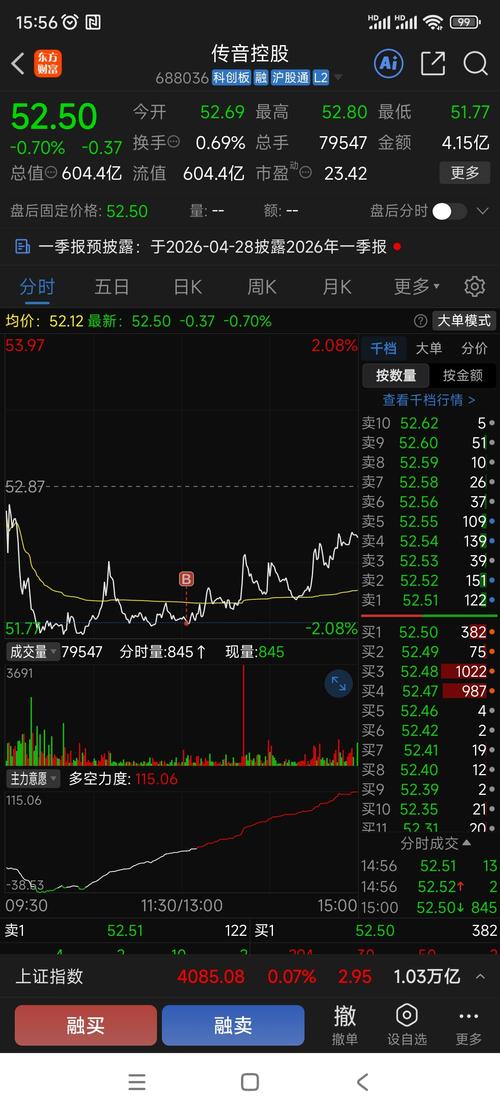 $传音控股(SH688036)$目前走势相对平稳,估计都在等一季报呢,等业绩出来看是上一个平台还是继续下一个平台
